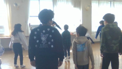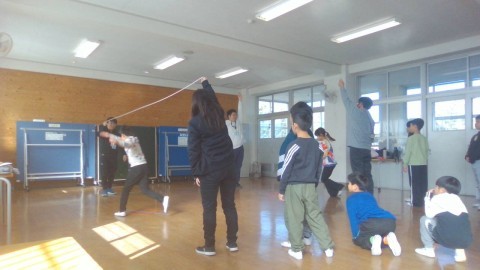 準備運動をしっかりした後「わっかのところでとぼう」をめあてに大繩の練習をしました。
