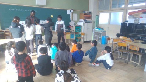 最後に授業をしてくださったお礼にみんなで作った作品を渡しました。
