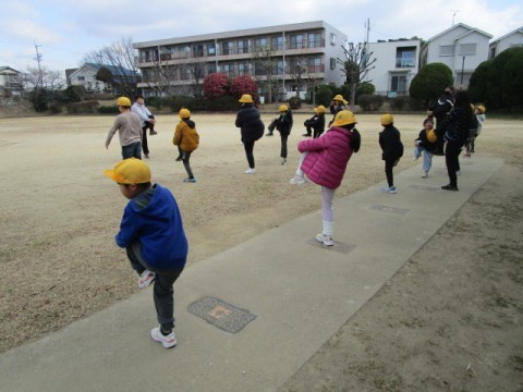 今日の朝の会は鈴の宮公園へ行きました。