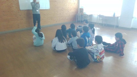今日の朝の会は集会室でレクリエーション活動をしました。休み時間の終わりが近づくと、座って待てている子が出てきました。そこから座って待てる子がだんだん増えていき、チャイムが鳴った時には姿勢よく座って朝の会を始めることができました。静かに待てていると、みんなでサッと始めることができて気持ちがいいですね。