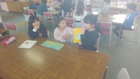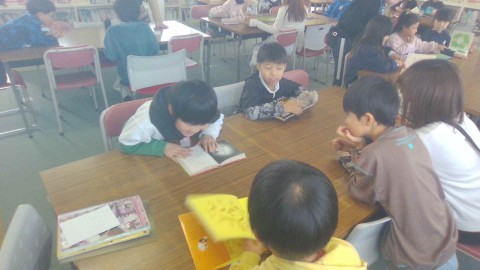 今日は「タンポポたいへん!」という絵本を読み聞かせしていただきました。この時も姿勢を崩さずに聞いていました。声かけをせずに自然とできています。学校図書館に行ってからは、自分のお気に入りの本を探しました。みんなが決めた後は、自分のお気に入りの本を紹介し合いました。読む本の幅が広がればいいですね。