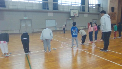 準備運動と柔軟体操の後は縄跳びカードをもらい,自分が挑戦したい技にどんどん挑戦していました。