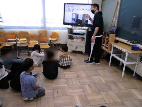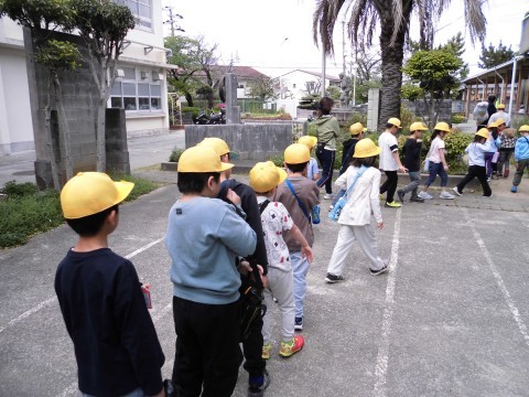 まず朝の会をした後に,道を歩くときのルール確認をしました。