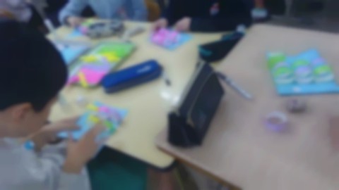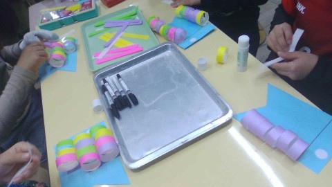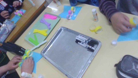今日のたんぽぽ学級の朝の会は,図工でこいのぼりの制作をしました。