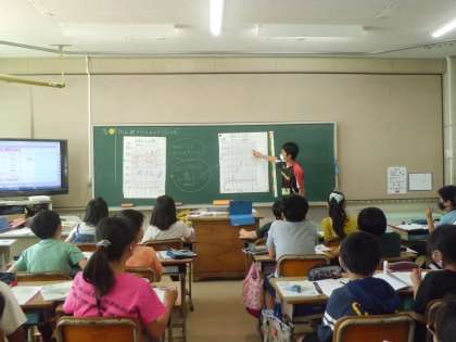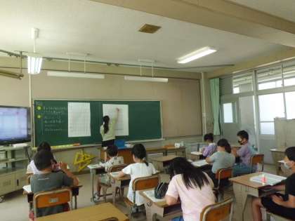 クラスを2分割して授業を行っています。今日は、「変わり方が分かりやすいグラフ」をかくことをめあてに学習を進めていました。めもりの取り方ひとつで変化が分かりやすくなりましたね。