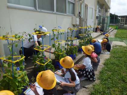 7/8(金) 1年生 あさがおの観察