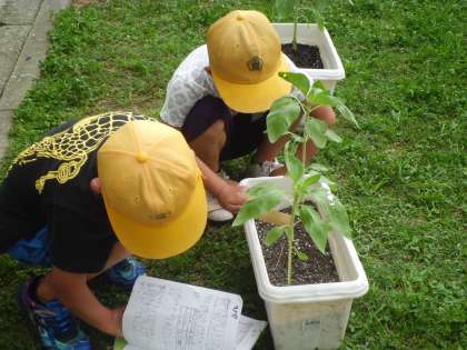 3年3組の理科では、ひまわり、マリーゴールド、ほうせんかの観察を行っていました。生長の変化をしっかり記録できたでしょうか。