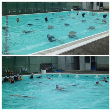 天候の様子を見ながら行い、4年2組は予定通り行うことができましたが、2年生は入水後しばらくして中断となりました。