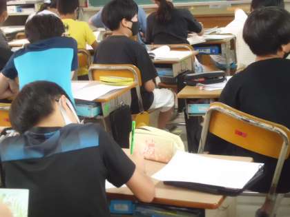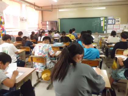 6年2組の教室では、1学期を振り返っていました。自身のがんばりをしっかり評価できたでしょうか。