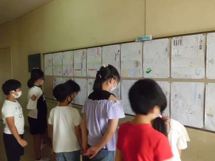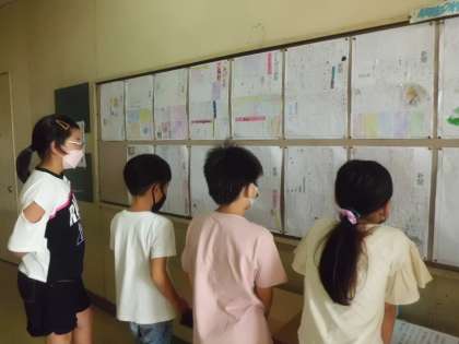 4年生が国語の学習で制作していた新聞は廊下に掲示されています。保護者の皆様も懇談会の折にご覧いただけます。