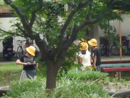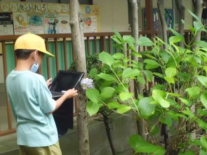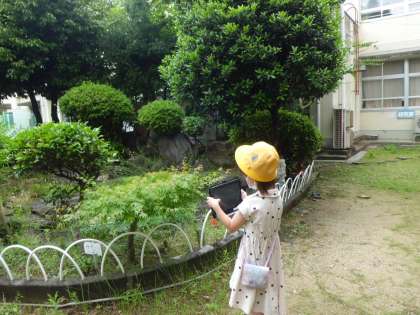 2年3組の生活科では、中庭にある植物の観察をしていました。暑い季節の今、どんな植物を見つけたのでしょう。
