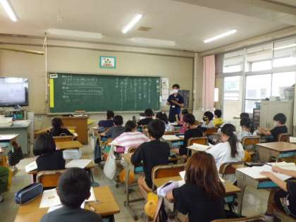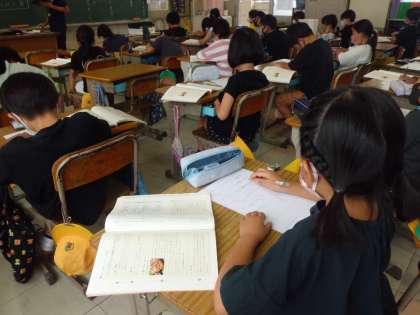 教科書に掲載されている報告書からわかることについて考え、ワークシートにまとめていました。