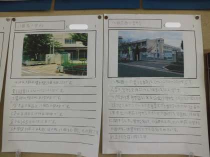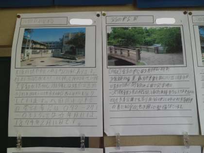 3年2組の教室後方に、地域のことを調べたシートが掲示されていました。