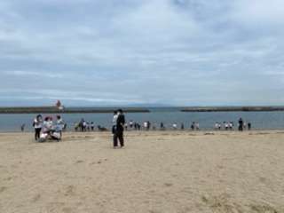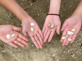 砂浜にて。貝殻拾いに水遊び。思い思いに楽しんでいます。
