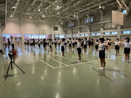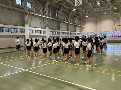 ラジオ体操をして、頭とからだをスッキリさせます。