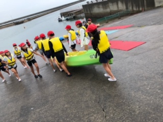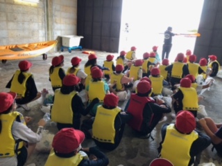 カヌーの漕ぎ方の説明を受けています。