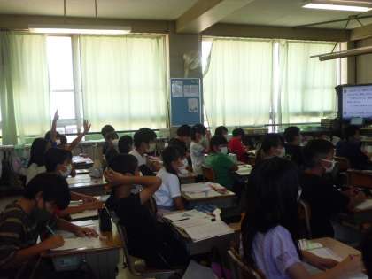 公倍数に関する練習問題に取り組んでいました。みんなで問題内容について共通認識してから自分で解いていました。