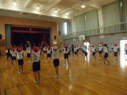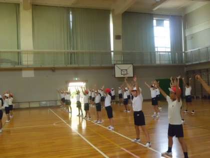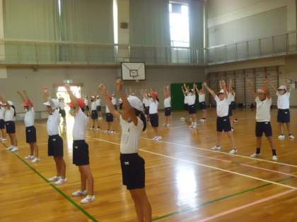 クラスごとに異なるタイミングで動きに変化をつけるところもあるダンスです。タイミングよく動けるよう集中して取り組んでいました。