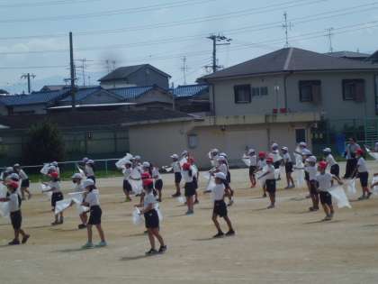 2時間目は3年生が運動場で学年体育に取り組んでいました。