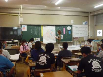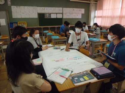 よりよい学びに向けて、研究授業を行い、事前事後の検討会を実施しています。今年度の研修主題「伝え合う力の育成〜相手を意識した表現方法の工夫〜」について、教職員全員で研究・研修を重ねています。