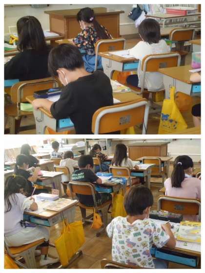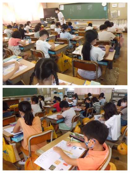 写真上が1年1組、写真下が1年2組の様子です。どちらのクラスも学習に向かう姿勢が素晴らしいです。