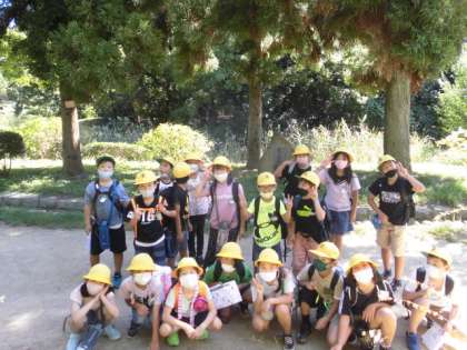 実際に古墳の周りを歩いて,大きさを実感していました。