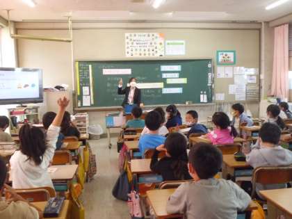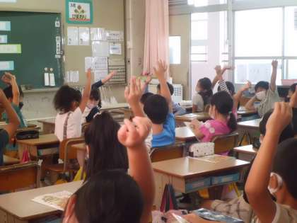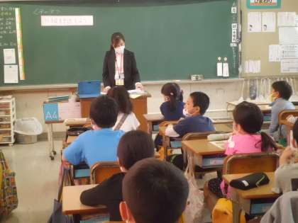 「熱中症を予防しよう」をテーマに、実習生が授業を行いました。子どもたちは自分たちの生活を振り返りながら、熱中症予防について学びました。