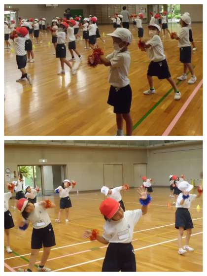 午後からの体育では、団体演技の細かい表現を意識しました。「つかれたぁ!」と言いながらも、にこやかな表情で豊かに表現することができていました。