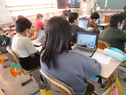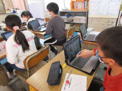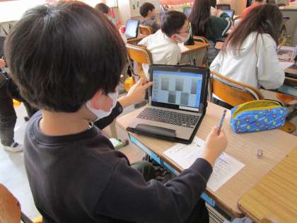 3年3組では、タブレットを用いて自主学習ノートのグランプリの選出をしていました。