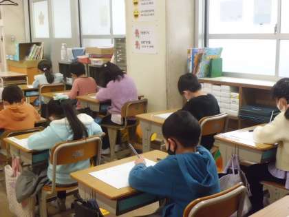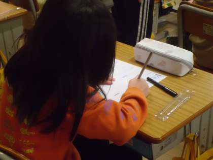 「足はペタッ、背すじピンッ、お腹と背中にグーひとつ」で姿勢を確認してから書き始めていました。
