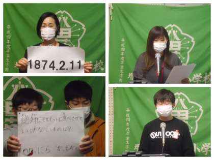 今日のテレビ朝礼では、校長先生から昔の八田荘小学校についての話がありました。149年前の1874年の2月11日に設立された本校ですが、本校から分離した小学校が複数校ありますという内容でした。今後も八田荘小学校の秘密を伝えていきますのでお楽しみに。