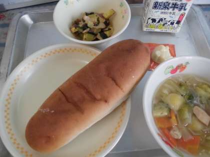 今日は、キャラクターの型抜きチーズもついていて、とても喜んで食べてくれていました。