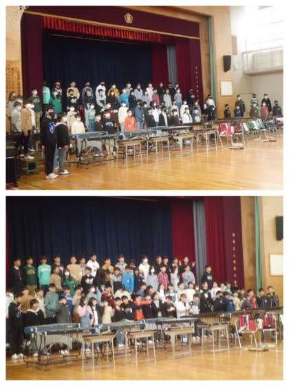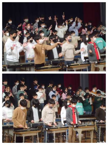 この曲は、2クラスともに一番人気だったので、全員で演奏しようということになり、学年で力を合わせ、息を合わせて演奏しました。