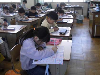 ひらがな学習では、「つ」と「る」の2文字を学習していました。