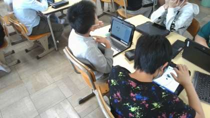 今日の朝の会はタブレット学習をしました。まずはタイピングの練習を行い、その後みんなで「心を合わせて絵合わせゲーム」を行いました。ペイントのアプリを使って動物の絵を描きました。みんな集中していました。