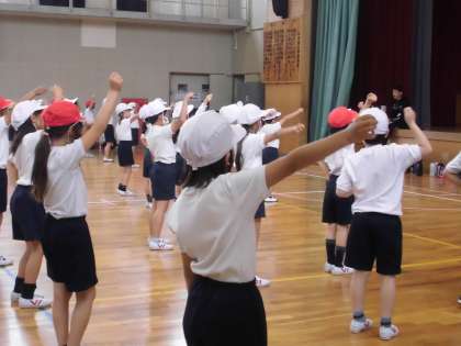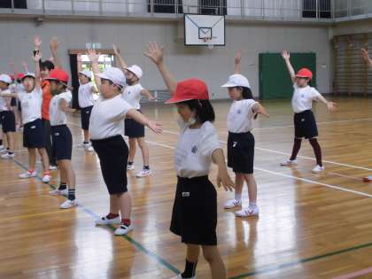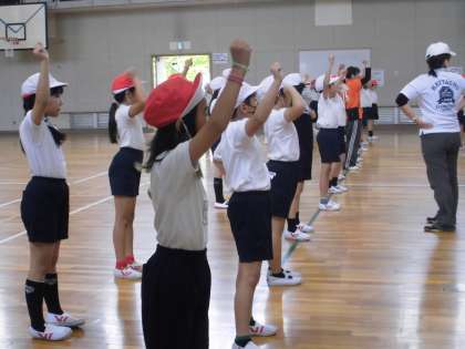 先生の動きをよく見て体を動かしています。