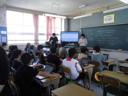 (写真は上から、給食委員会、体育委員会です。体育委員会はスポーツテストの説明&練習会に備えて、自分たちが体験している様子です。)