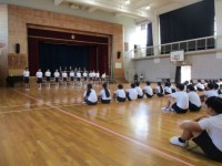 6年生が体育館で、連合運動会に向けて綱引きの練習に取り組んでいました。