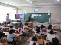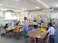 1年1組の算数では、復習内容のプリント学習に取り組んでいました。