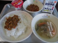 ~今日の献立~ごはん牛乳みそ汁鮭の風味焼き大豆の磯煮大豆は、肉類と同じくらいたん...
