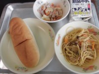 ~今日の献立~ミニコッペパン牛乳きのこスパゲティポテトサラダ今日のスパゲティには...
