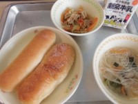 ~今日の献立~黒糖パン牛乳クマラスープ焼ウインナー野菜ソテー今日は姉妹都市献立で...