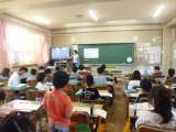 2年3組の音楽では、「ぷっかりくじら」の曲を鍵盤ハーモニカとタンバリンで演奏して...