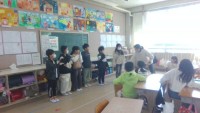 書写の学習でした。トメ、ハネを意識しながら書いていました。早く終わった人は挿絵の色をぬっていました。