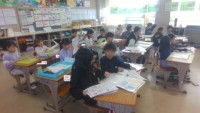 図工をしていました。「まどからこんにちは」どんなものが覗いているかいろいろ考えていました。