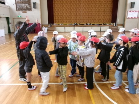 体育館でみんな遊びをしていました。最後にみんなで楽しい思い出を作って3年生になってほしいと思います。