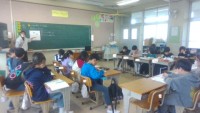 算数の学習では、2けた÷2けたの計算方法を話し合い、わる数がちがっても、同じように筆算できるのかを班で協力して確かめました。