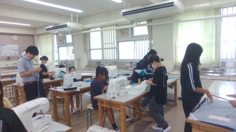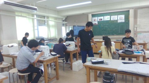 しつけ縫いができた人から,ミシン縫いに挑戦しました。