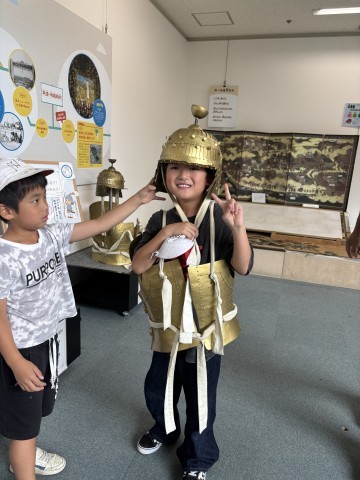 土器の修復や甲冑を着る体験などを楽しみました。