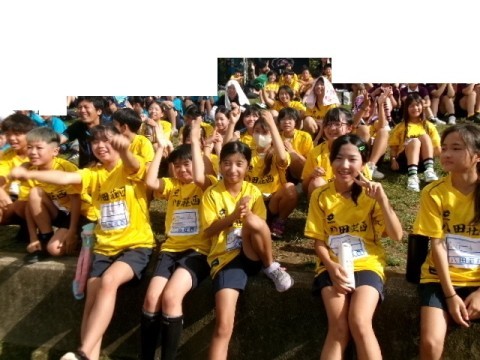 リレーの時にみんあで応援しました。学校名を呼ばれたときや走っているとき,みんなで大声で応援していました。